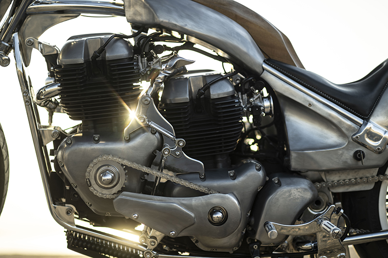 Most custom motorcycles showcased at HCS are powered by large-displacement engines, and the engine’s visual impact is always a crucial element. The CLASSIC 650 engine is beautiful, powerful, and full of character — but for HCS, I wanted to elevate its presence even further. That’s how I arrived at the idea of mounting two engines.