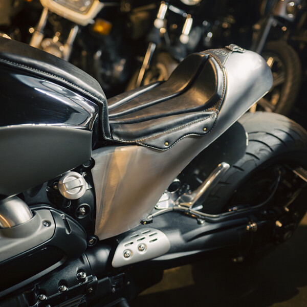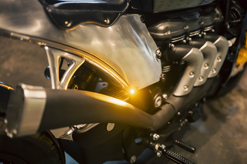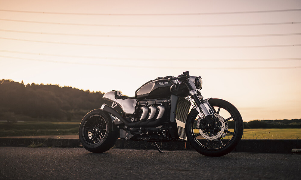 このプロジェクトは、背の高いオーナーにフィットする一台を作る――そんなシンプルな想いからスタートした。ベースに選んだのは圧倒的存在感を放つ TRIUMPH ROCKET 3。もしメーカー純正でこんな仕様が発売されたら…そんな理想を追い求め、完璧な仕上がりを目指した。
