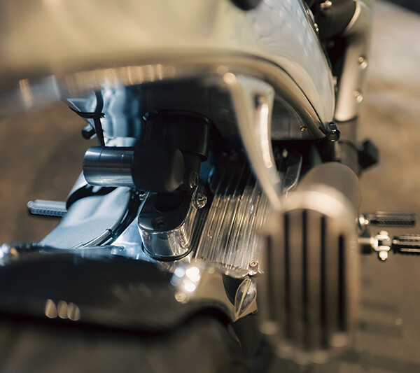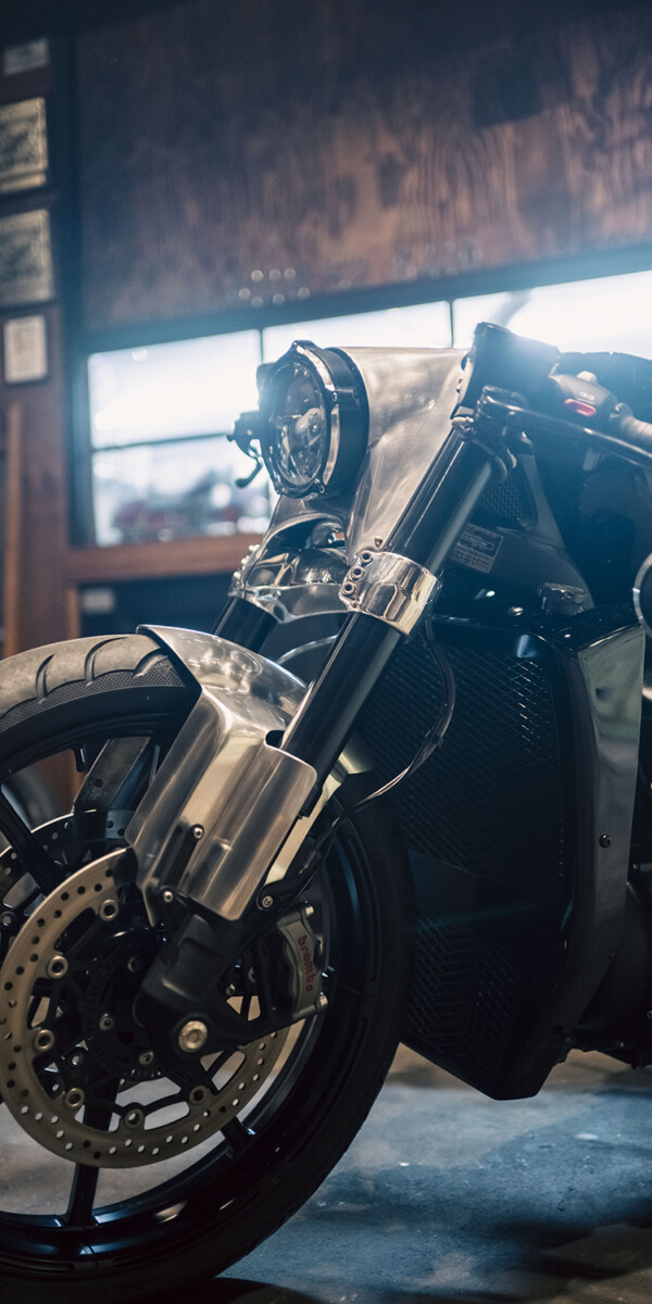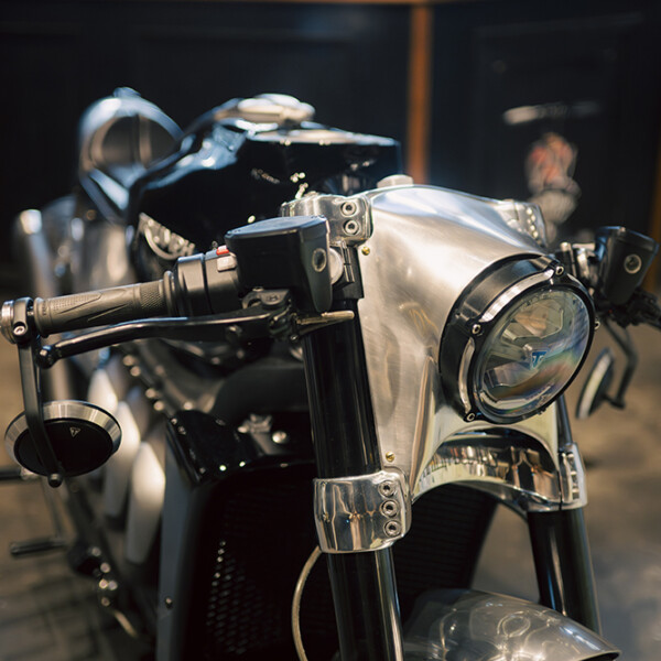 Up front, we chose a 21-inch wheel, a decision rooted in our chopper-building DNA. The goal was not a café racer, but a bold and aggressive street fighter. By narrowing the body and lowering its stance, we achieved a look that is both light and dynamic, full of energy and speed.