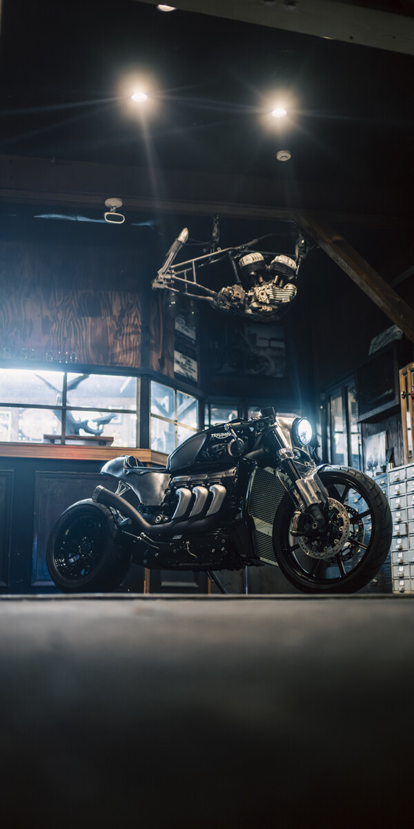 This project began with a simple idea: to build a bike that truly fits a tall rider. The base was the mighty Triumph Rocket 3, a machine already known for its overwhelming presence. We set out to create a concept that could stand as if it had rolled straight out of the factory—yet with a custom spirit at its core.